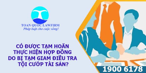 Hiện nay rất nhiều người thắc mắc về vấn đề có được tạm hoãn thực hiện hợp đồng do bị tạm giam điều tra tội cướp tài sản không. Hãy cùng Luật Toàn Quốc tìm hiểu rõ hơn về điều này ở bài viết sau đây bạn nhé