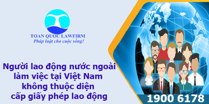 Luật Toàn Quốc cảm ơn bạn đã tin tưởng và gửi câu hỏi Người lao động nước ngoài làm việc tại Việt Nam không thuộc diện cấp giấy phép lao động. Chúng tôi xin cung cấp thông tin tư vấn về vấn đề trên như sau: